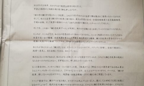 仕事/キャリア企業向けグループウェアなどで知られるサイボウズが、昨日の日経新聞に大きな広告を出していました。しかし製品紹介や採用募集の広告ではありません。そこには大きく「働き方改革に関するお詫び」と書かれていました。 面…